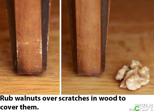 خط و خش روی وسایل چوبی را با کشیدن گردو بر روی آنها برطرف کنید